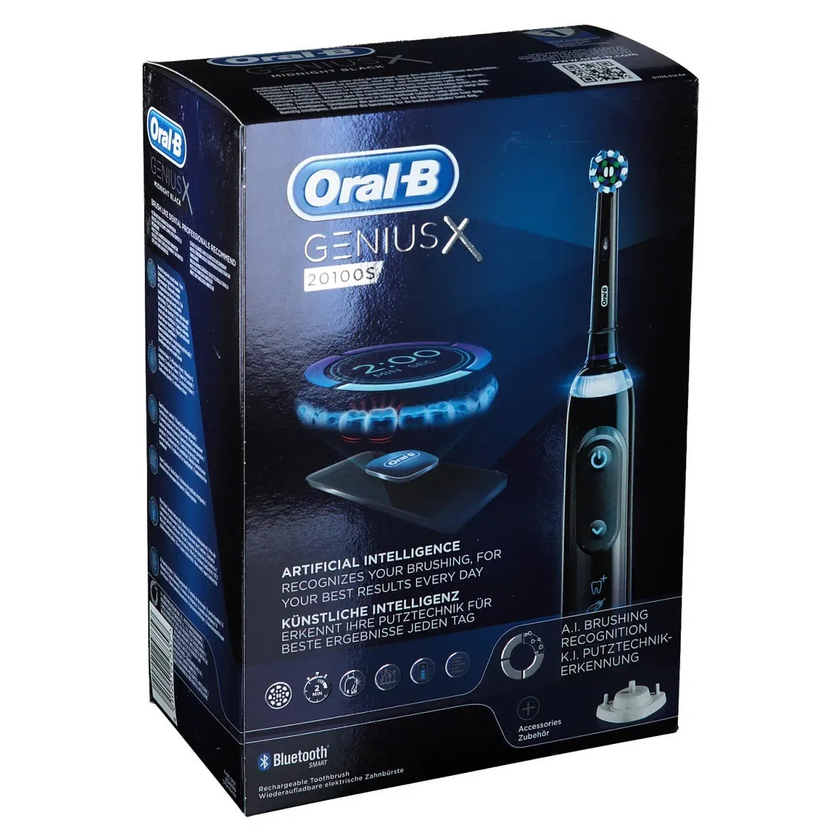 Scopri lo spazzolino elettrico Oral-B Genius X 20100S Black con intelligenza artificiale, sensori di movimento e protezione gengive avanzata. Disponibile su Farmacie Vigorito.