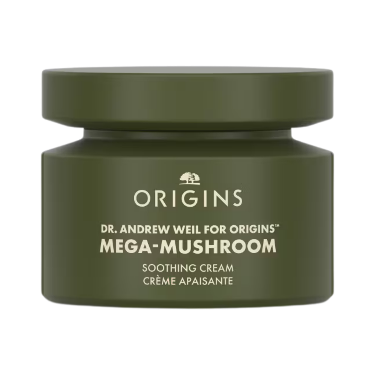 La crema viso lenitiva Origins Mega-Mushroom Relief & Resilience Soothing Cream, sviluppata con Dr. Andrew Weil per il gruppo Estée Lauder, è una crema superidratante che lenisce la pelle all'istante e aiuta a ridurre gli arrossamenti visibili e la sensibilità. Questa crema pelli sensibili è formulata con la miscela Dr. Weil Mega-Mushroom™ a base di funghi reishi, cordyceps, funghi chaga fermentati e olivello spinoso.