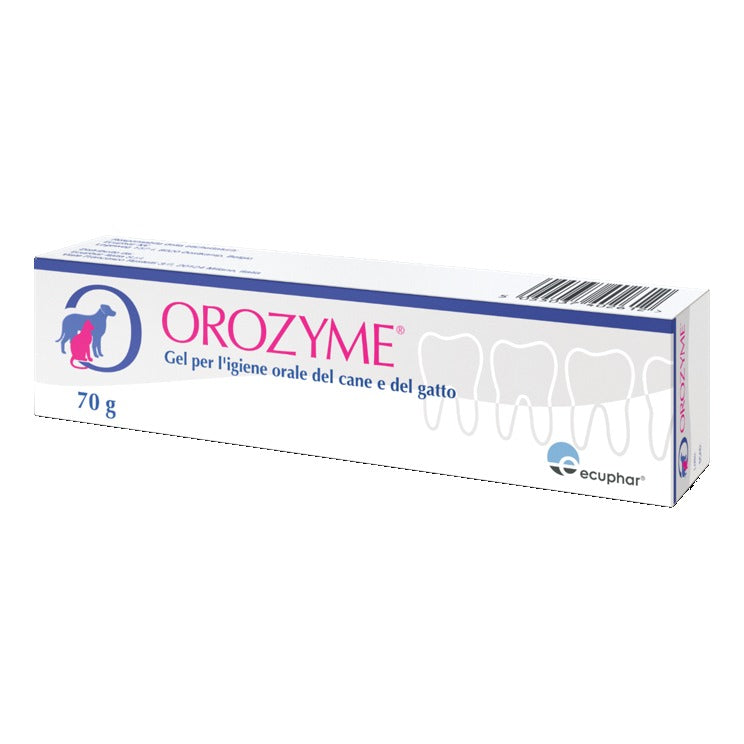 Orozyme è un gel orale che aiuta a proteggere il cavo orale contro placca, tartaro, alito sgradevole. Il complesso enzimatico contenuto favorisce le difese antibatteriche della saliva. Le proprietà adesive del gel stimolano la masticazione assicurando una omogenea distribuzione del prodotto, facilitata anche dal surfattante. L'azione abrasiva calibrata della formulazione agevola la rimozione meccanica della placca dentale. Gli appetibilizzanti permettono una facile somministrazione; molti animali assumono il gel spontaneamente.