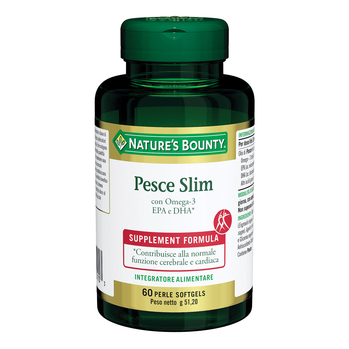 Integratore alimentare a base di olio di pesce contenente acidi grassi polinsaturi EPA eDHA. EPA e DHA sono omega-3 che svolgono diverse attività. Il DHA, se assuntonella quantità di 250 mg al giorno, contribuisce a mantenere una normalefunzionalità cerebrale e una normale capacità visiva. EPA e DHA insiemecontribuiscono alla normale funzione cardiaca. Tale effetto benefico avviene conl'assunzione quotidiana di almeno 250 mg di EPA e DHA. La perla in softgel riduce alminimo il retrogusto di pesce ed è di piccole dimensioni.