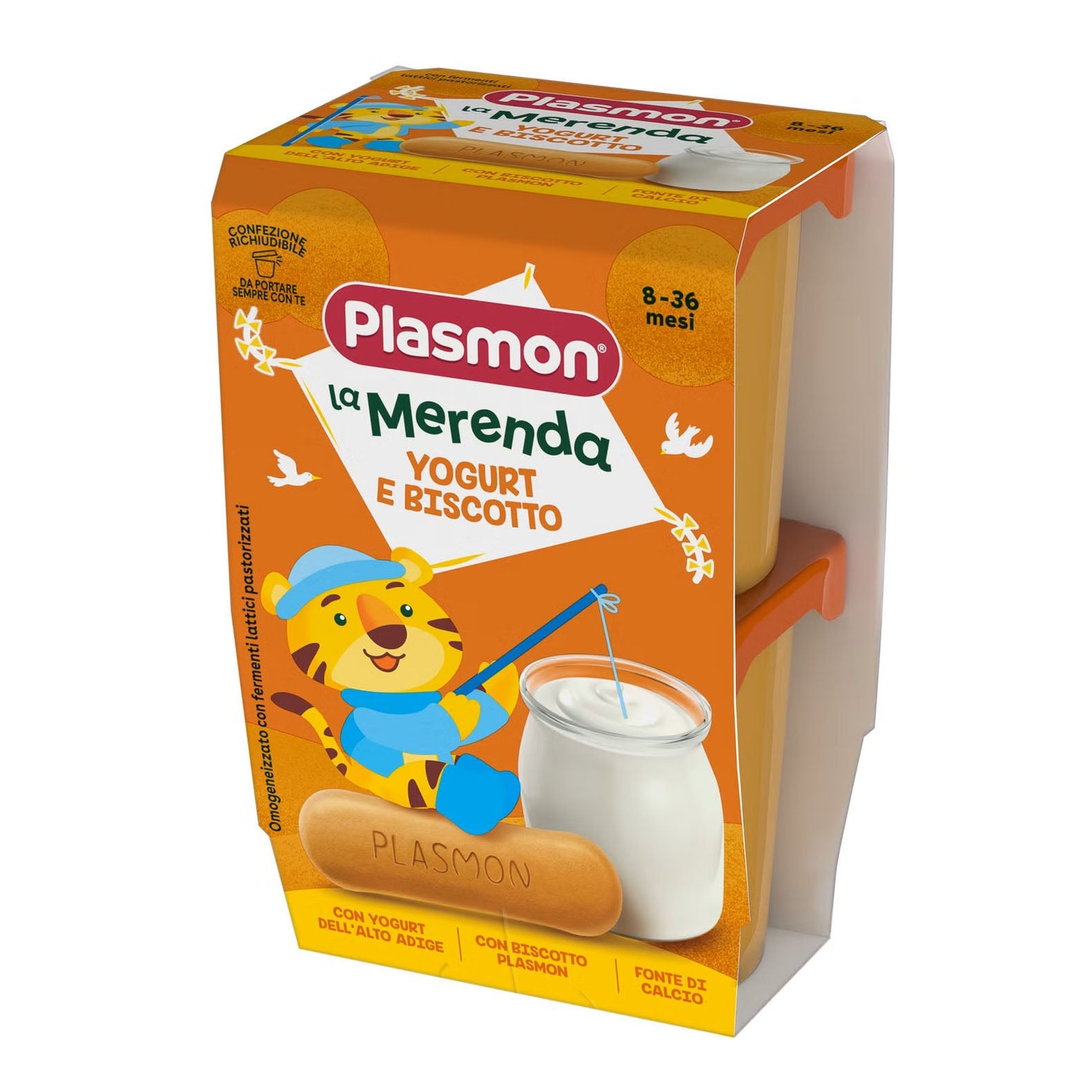 Merenda al gusto di biscotto Plasmon in uno yogurt dalla consistenza cremosa.
