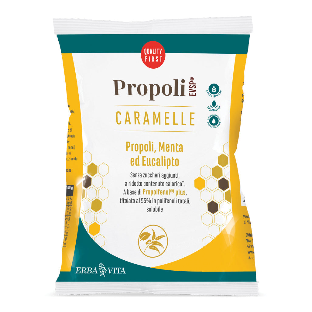Caramelle dure a base di PROPOLI EVSP ed oli essenziali di Menta ed Eucalipto.