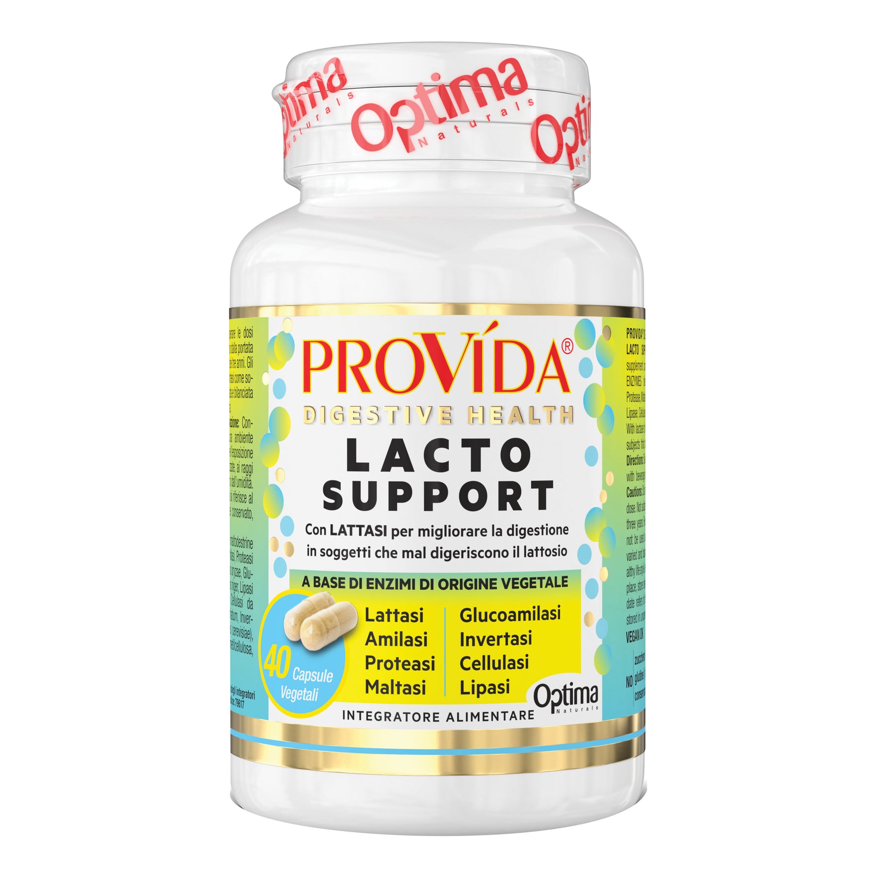 Provida Lacto Support | Integratore Lattasi Enzimi Digestivi Intolleranza Lattosio Latte Latticini Optima | 40 Capsule Veg