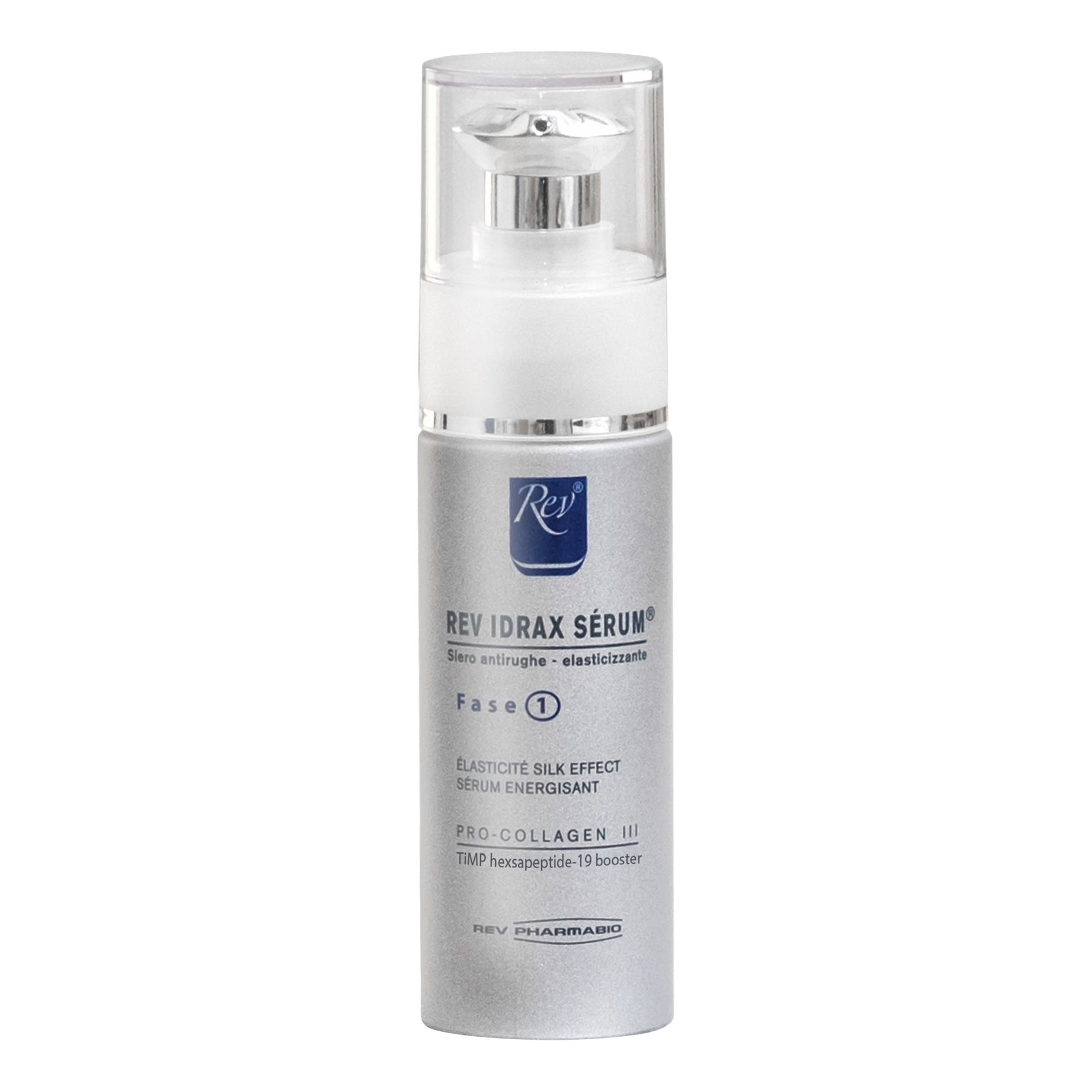 Siero anti rughe, elasticizzante, effetto seta, adatto per tutti i tipi di pelle. Abbinabile sia a Rev Idrax Viso che a Rev Idrax boto. In caso di trattamenti medico estetici ne prolunga i benefici. Per uso quotidiano. Applicare una o più volte al giorno sulla pelle detersa e asciutta; massaggiare fino a completo assorbimento con movimenti circolari tesi alla distensione delle rughe.