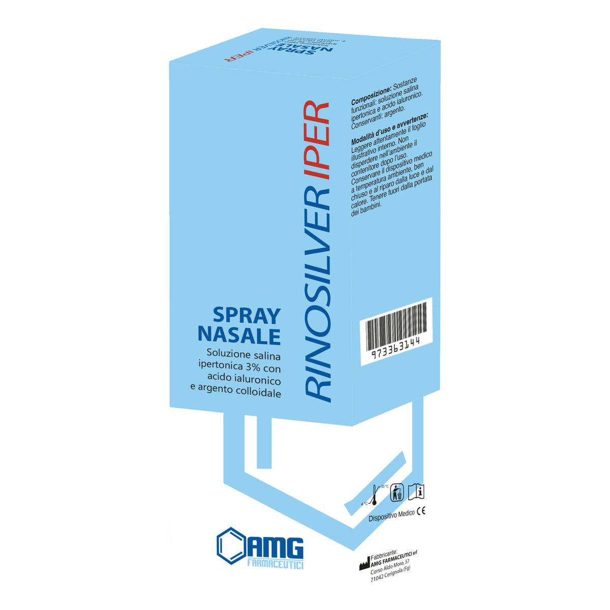Soluzione salina ipertonica con acido ialuronico e argento colloidale.