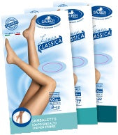 Pratico e facile da indossare, è particolarmente indicato per essere utilizzato con i pantaloni. Consente di godere dei benefici della compressione graduata senza dover necessariamente indossare un collant. Realizzato con polsino alto e morbido che non stringe. Con punta elastica e rinforzata, tallone rinforzato. Realizzato con filati elastici finissimi e lavorazione in maglia liscia per un effetto elegante, femminile e confortevole.