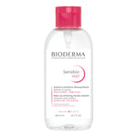 Impregnare un batuffolo di cotone con l'acqua micellare Sensibio H2O.
