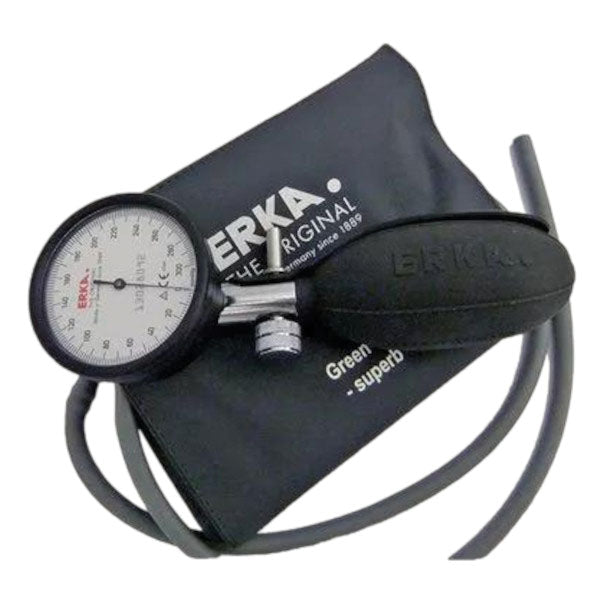Sfigmomanometro aneroide con manometro di precisione in alluminio anodizzato e monopalla incorporata modello a 1 tubo.
