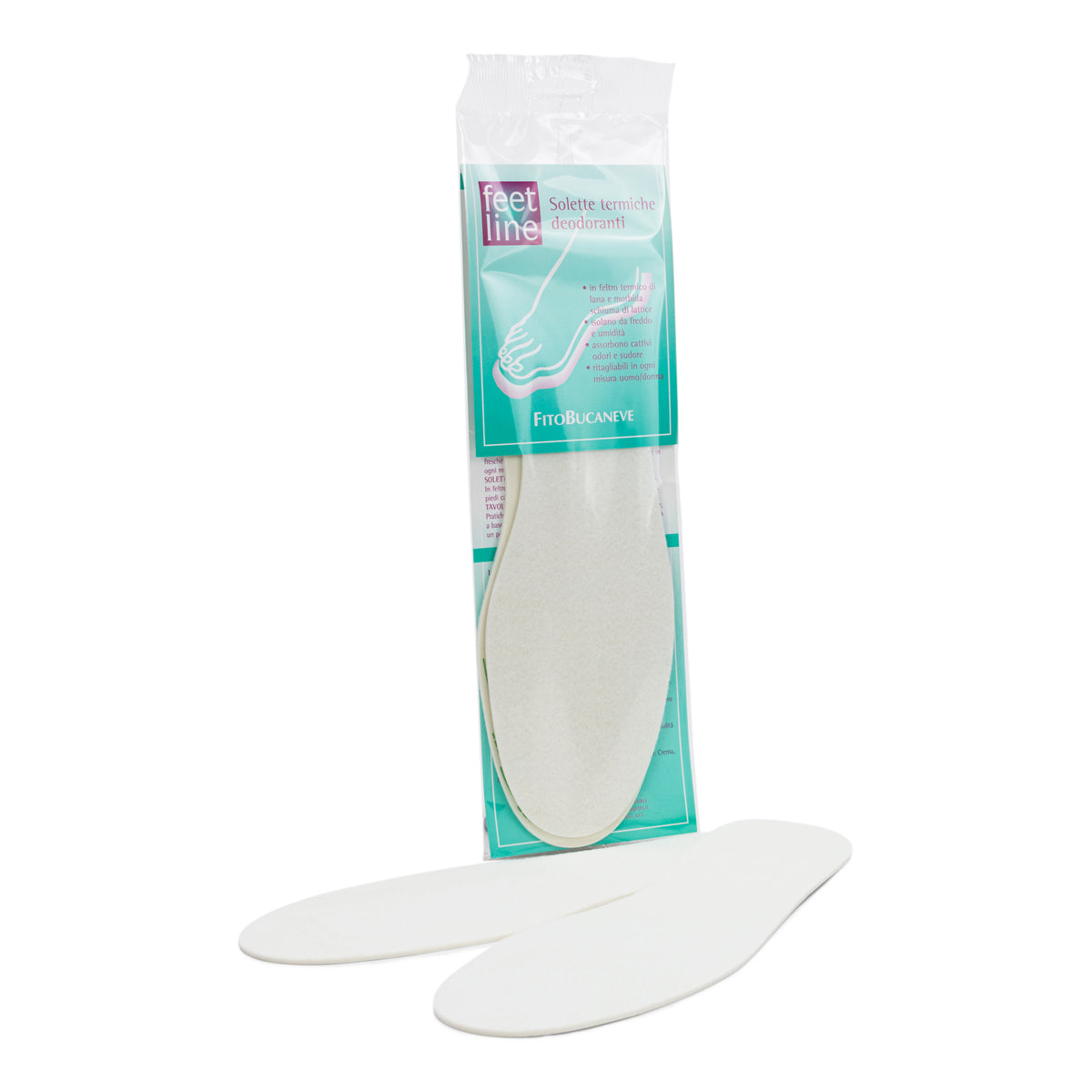 il morbido feltro di lana termica garantisce una temperatura costante all'interno della calzatura mentre la soffice schiuma di lattice dona confort e benessere. Igieniche e resistenti le solette termiche deodoranti feet line sono lavabili in acqua tiepida e sapone neutro e utilizzate quotidianamente aiutano a prevenire la formazione di geloni, calli e duroni.