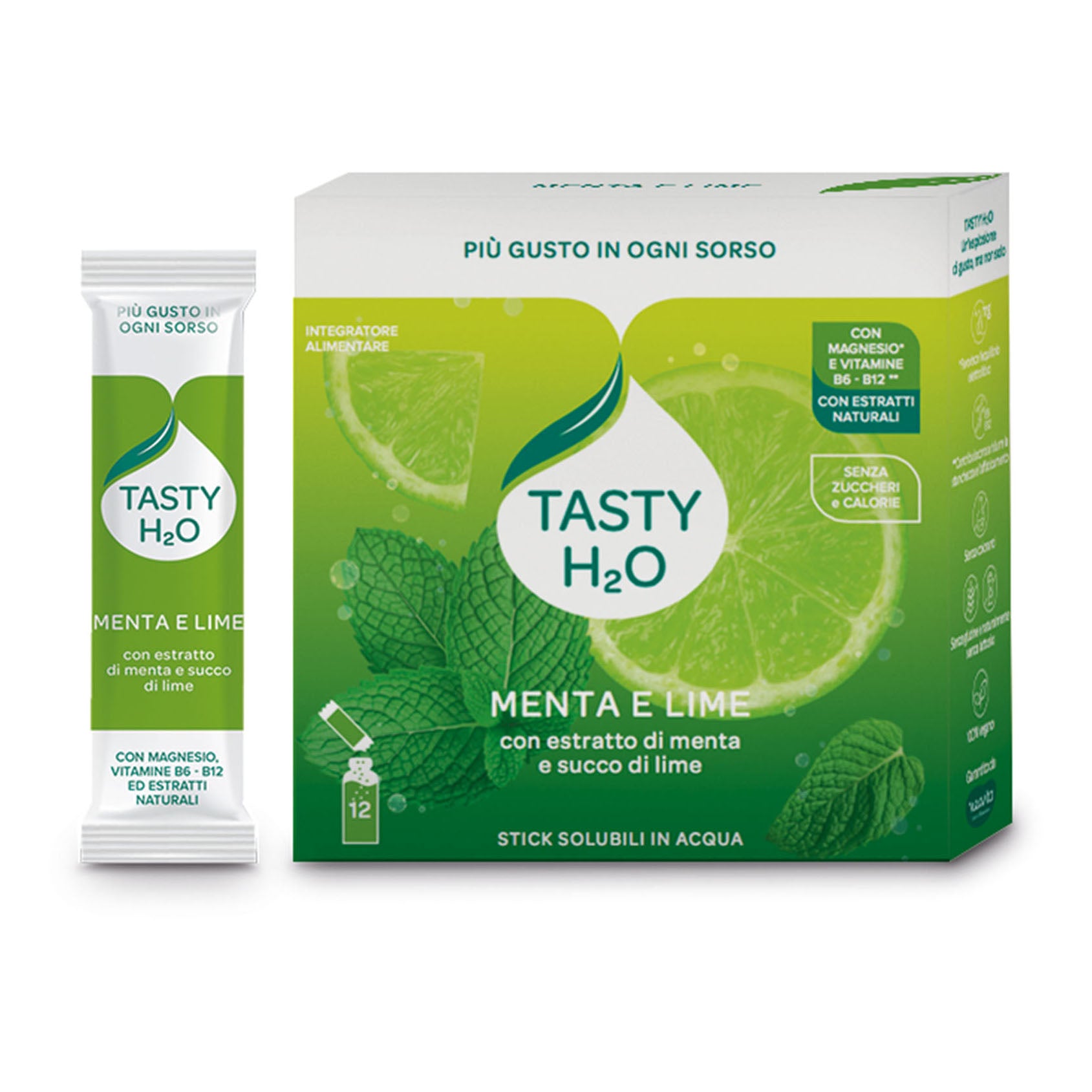 Tasty H2o Menta E Lime – Integratore Idrosolubile Con Magnesio E Vitamine B6-B12 12 Stick
