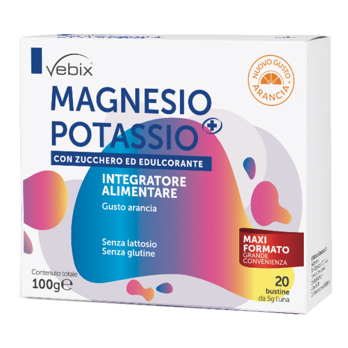 Il magnesio contribuisce alla riduzione della stanchezza e dell’affaticamento. Il potassio contribuisce alla normale funzione muscolare e del sistema nervoso. La vitamina C contribuisce al normale metabolismo energetico.