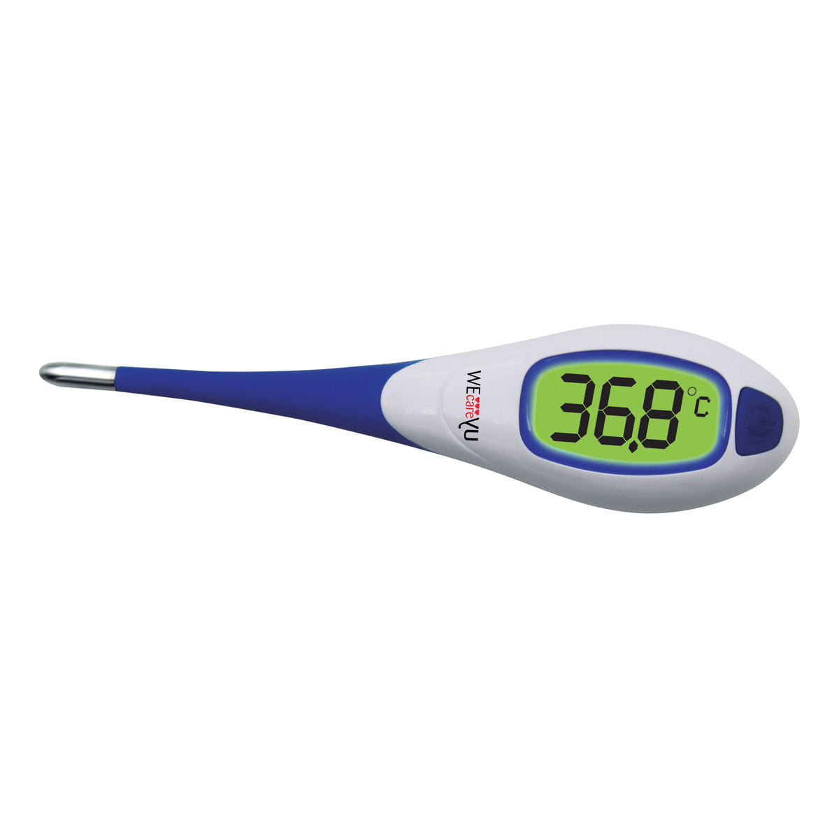 Termometro con ampio display illuminato, per leggere le misurazioni al buio; tre codici colore, per un'immediata interpretazione delle letture; punta flessibile, per un massimo comfort e ideale per misurazione orale, rettale e ascellare. 100% impermeabile.