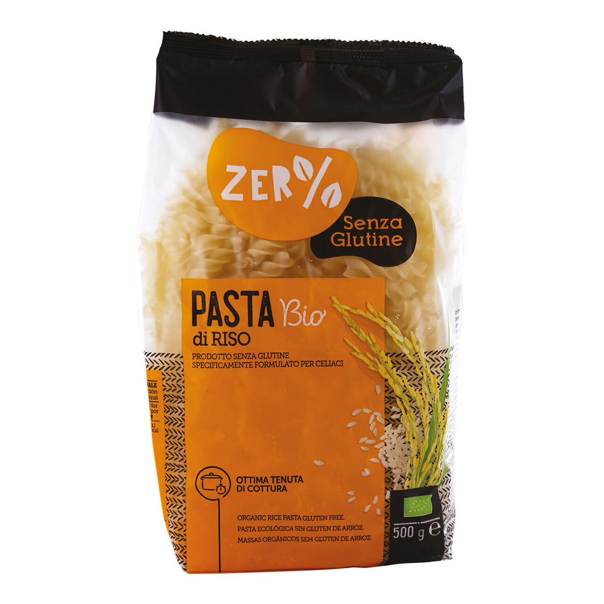 Pasta di riso, formato fusilli senza glutine da agricoltura biologica.Ingredienti