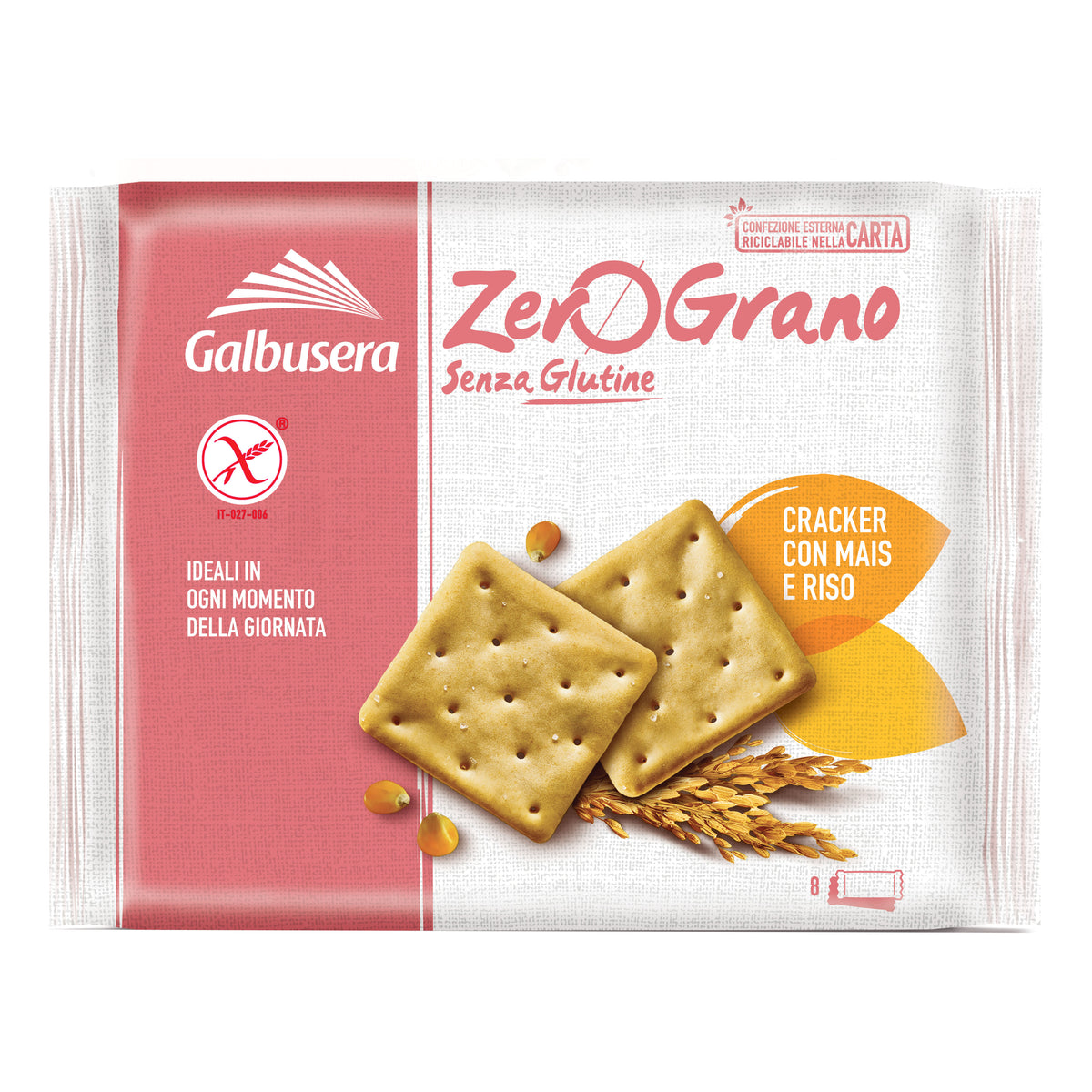 Cracker con riso e mais, dedicato a tutti coloro che sono intolleranti al glutine ma non vogliono rinunciare alla bontà: una gamma di prodotti da forno fatti con ingredienti ottenuti da materie prime naturalmente prive di glutine, ma ricchi di gusto.